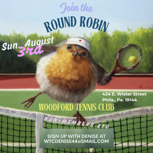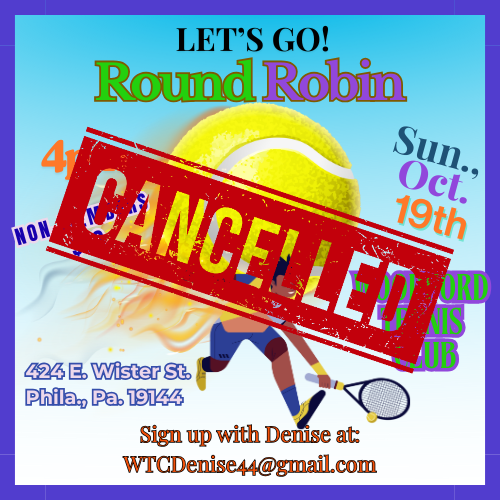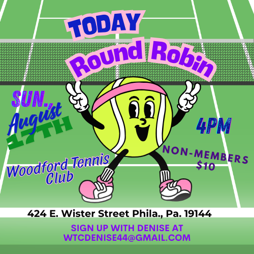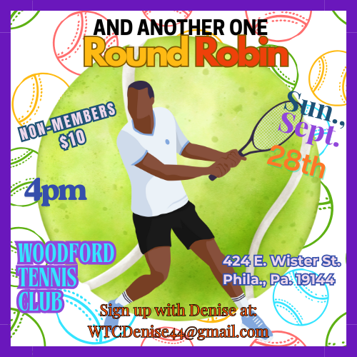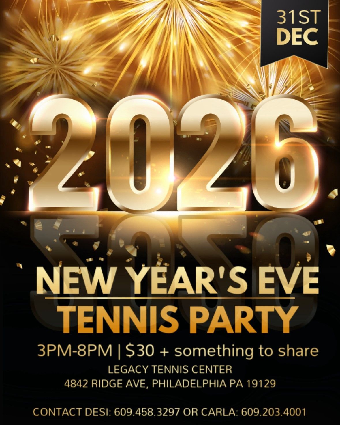 Pls see/ share attached flyer for a New Year's Eve Tennis Party 12.31.25 @ Legacy Tennis Center 4842 Ridge Ave, Phila., Pa. 19129, from 3pm - 8pm/ $30. For more info, pls contact Desi: 609-458-3297 OR Carla: 609-203-4001. Happy New Year!!!