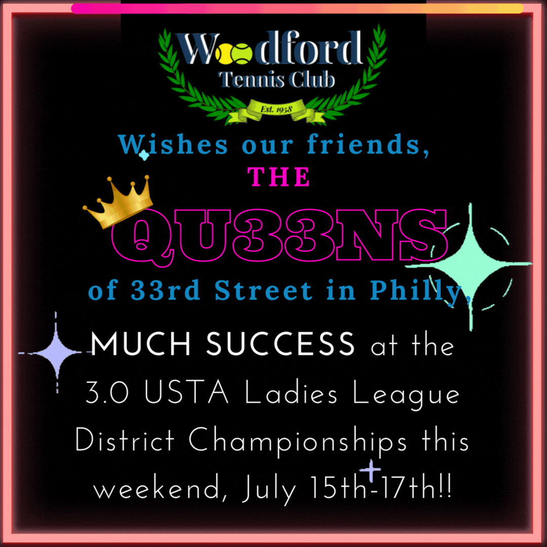 Pls see/ share attached flyer for a New Year's Eve Tennis Party 12.31.25 @ Legacy Tennis Center 4842 Ridge Ave, Phila., Pa. 19129, from 3pm - 8pm/ $30. For more info, pls contact Desi: 609-458-3297 OR Carla: 609-203-4001. Happy New Year!!!